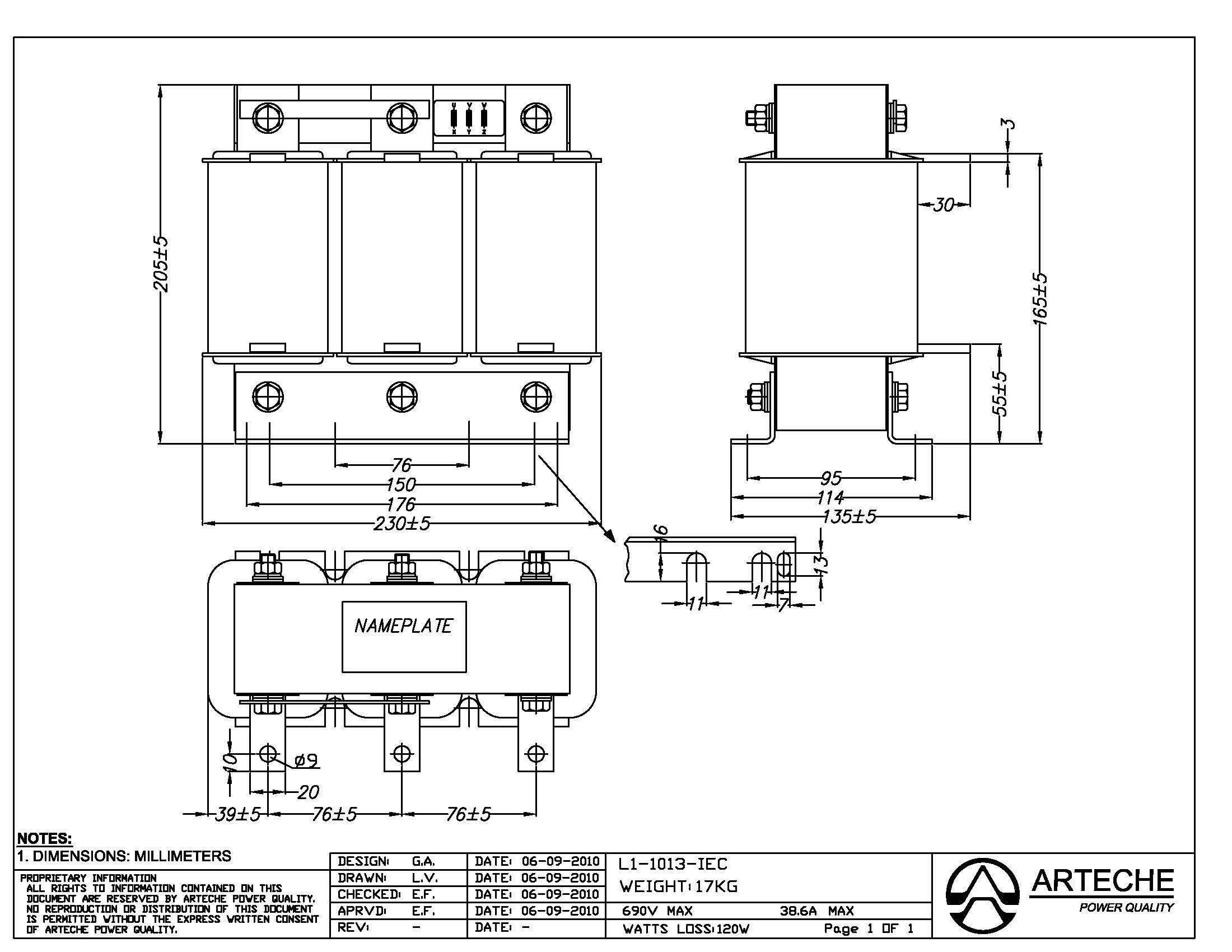 Arteche 電抗器 (3Ph, 38.6A, 690V) II L1-1013-IEC
