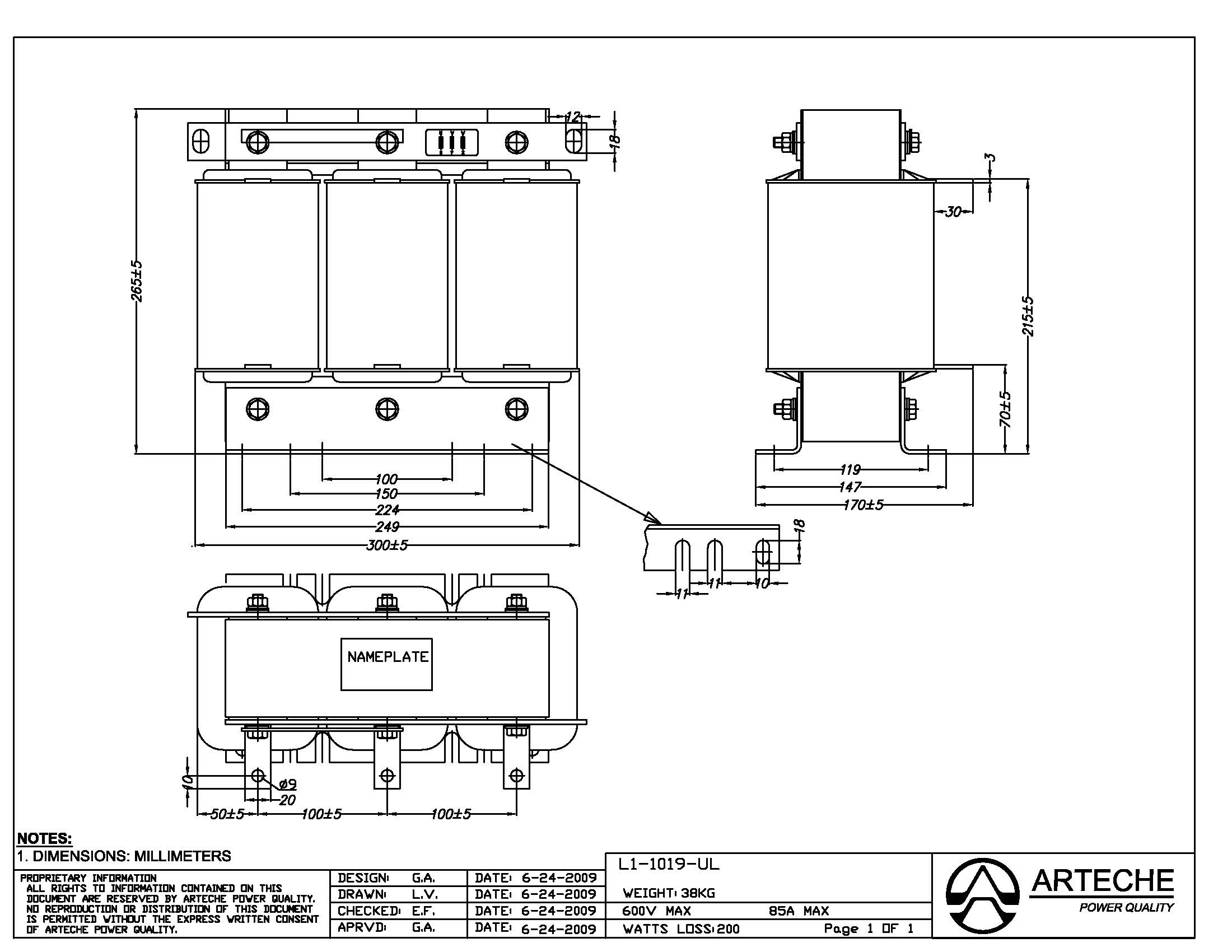 Arteche 電抗器 (3Ph, 85A, 600V) II L1-1019-UL