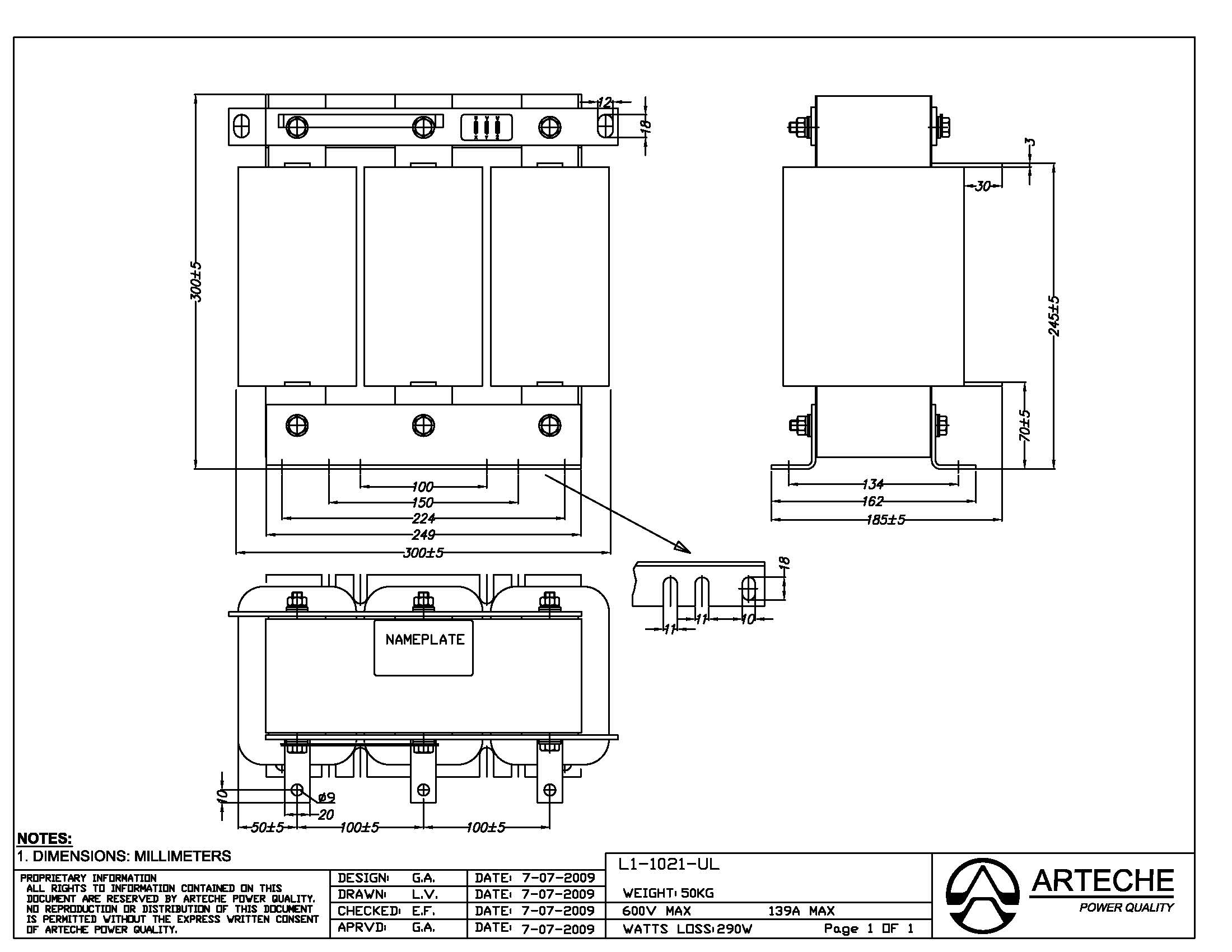 Arteche 電抗器 (3Ph, 139A, 600V) II L1-1021-UL