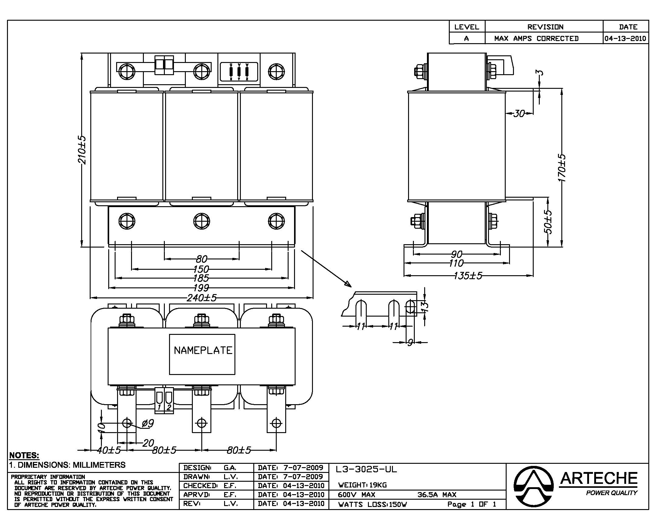 Arteche 電抗器 (3Ph, 36.5A, 600V) II L3-3025-UL