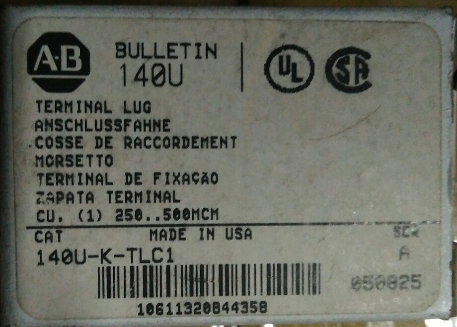 AB 接線端子 (Terminal Lug, for K Frame Breaker) 140U-K-TLC1