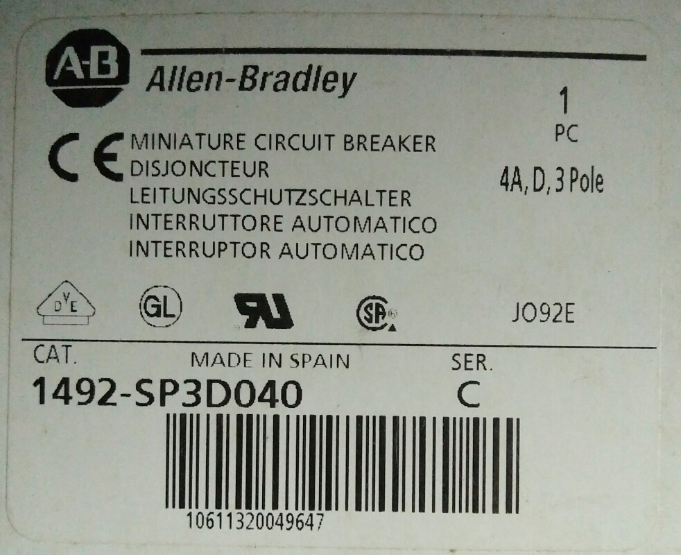 AB 微型斷路器 (Miniature Circuit Breaker,3P 4A 5KA 277VAC) 1492-SP3D040