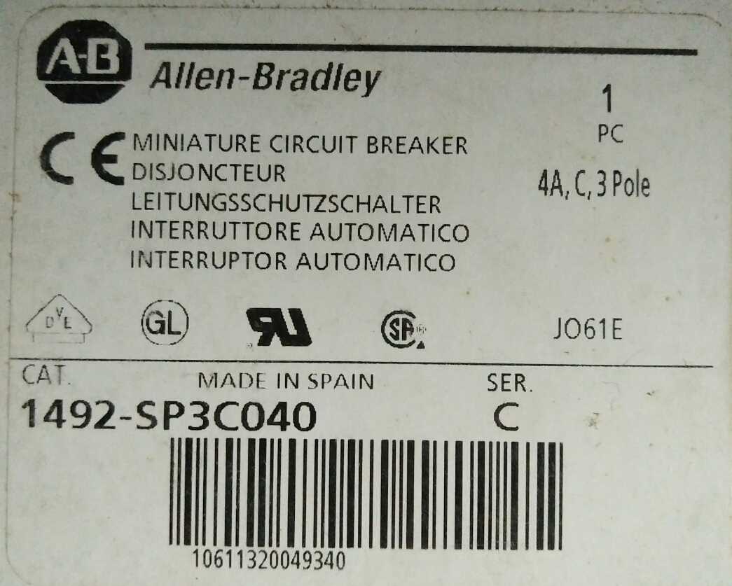 AB 微型斷路器 (Miniature Circuit Breaker,3P 4A 10KA 277VAC) 1492-SP3C040