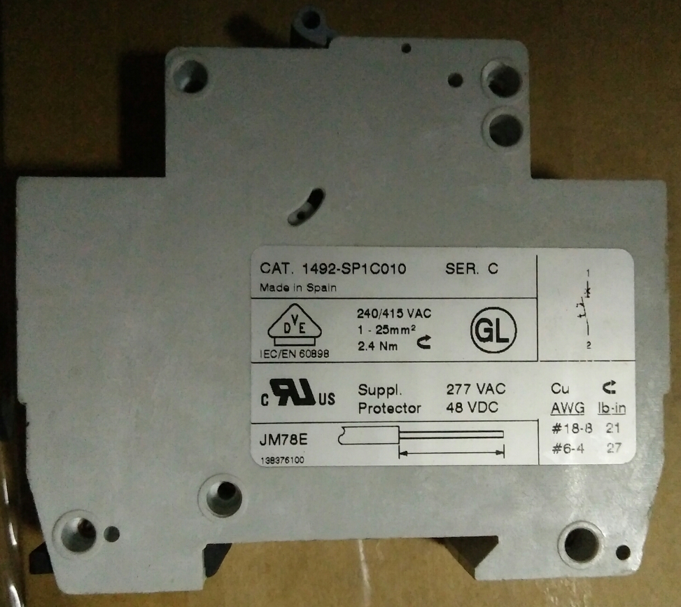 AB 微型斷路器 (Miniature Circuit Breaker,1P 1A 10KA 277VAC) 1492-SP1C010
