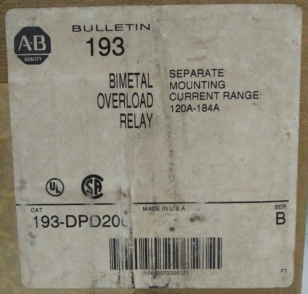 AB 過載電驛 (Overload Relay, 120~184A) 193-DPD200