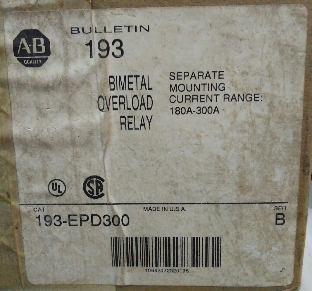 AB 過載電驛 (Overload Relay, 180~300A) 193-EPD300