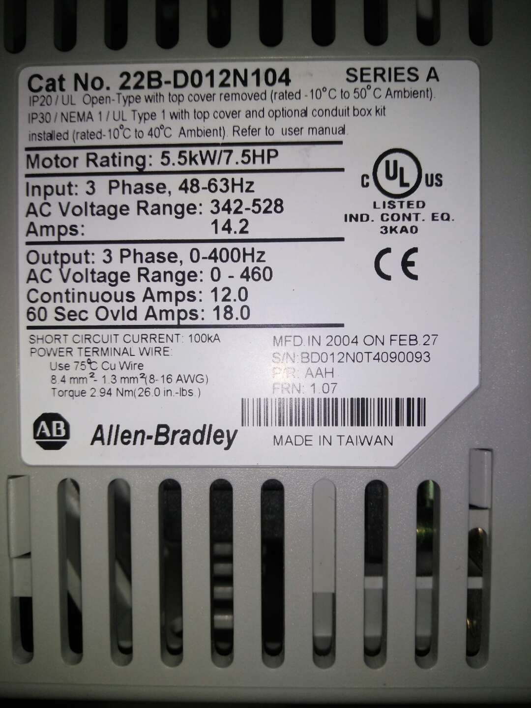 | Manufacturer Series | Allen-Bradley PowerFlex 40 |