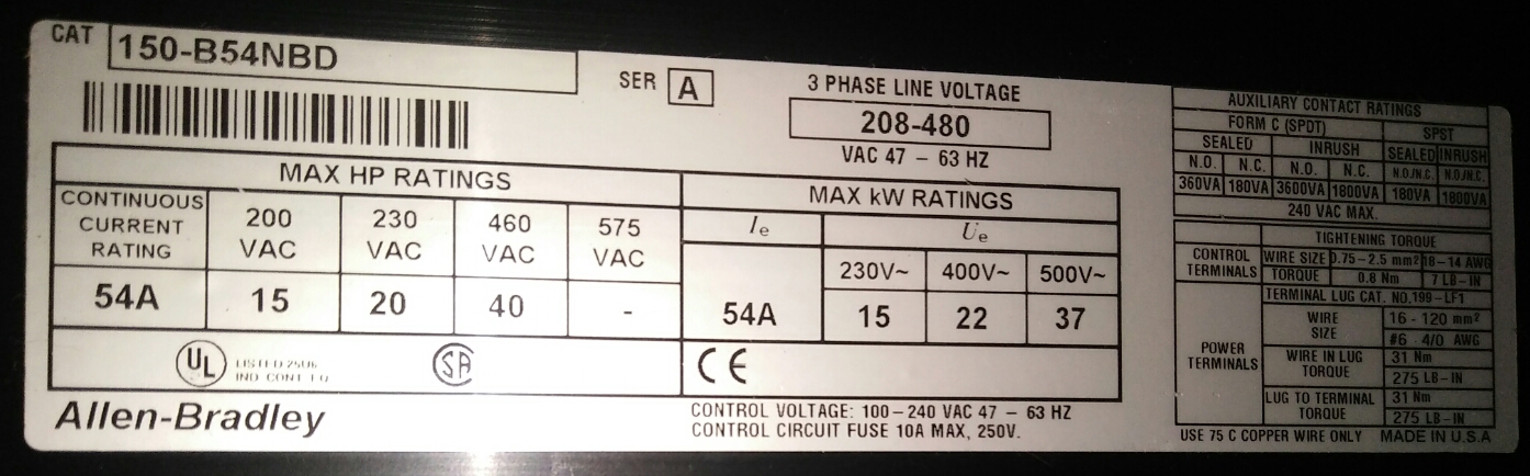 | Control Voltage | 100…240V AC, 50/60 Hz |