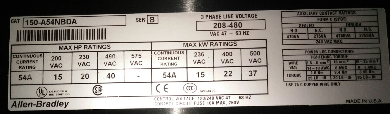 | Control Voltage | 100…240V AC, 50/60 Hz |