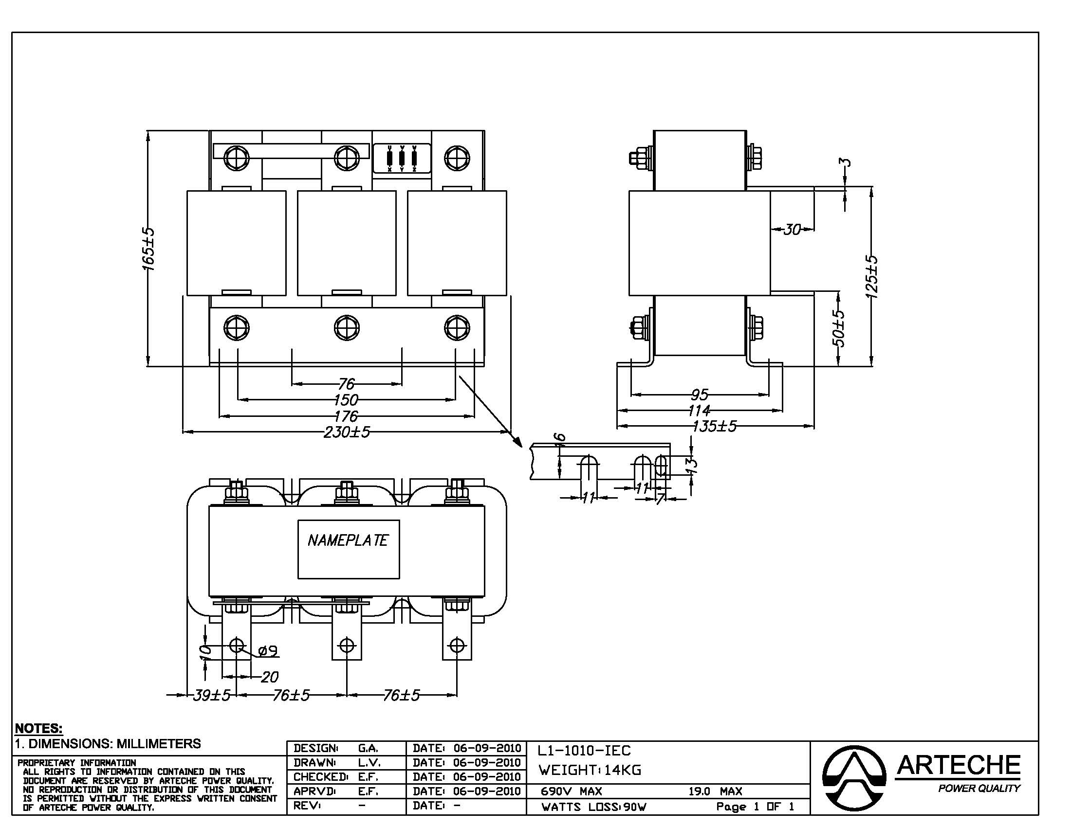 Arteche 電抗器 (3Ph, 19A, 690V) II L1-1010-IEC