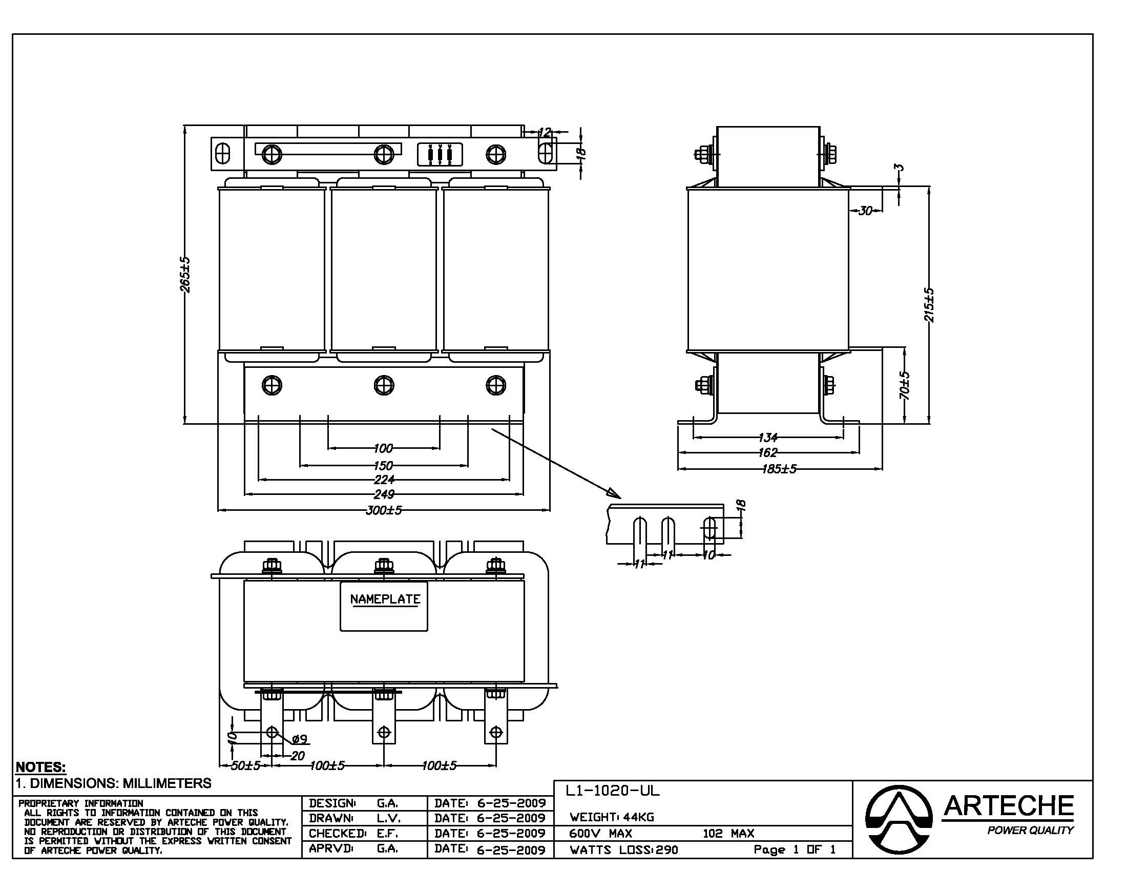 Arteche 電抗器 (3Ph, 102A, 600V) II L1-1020-UL