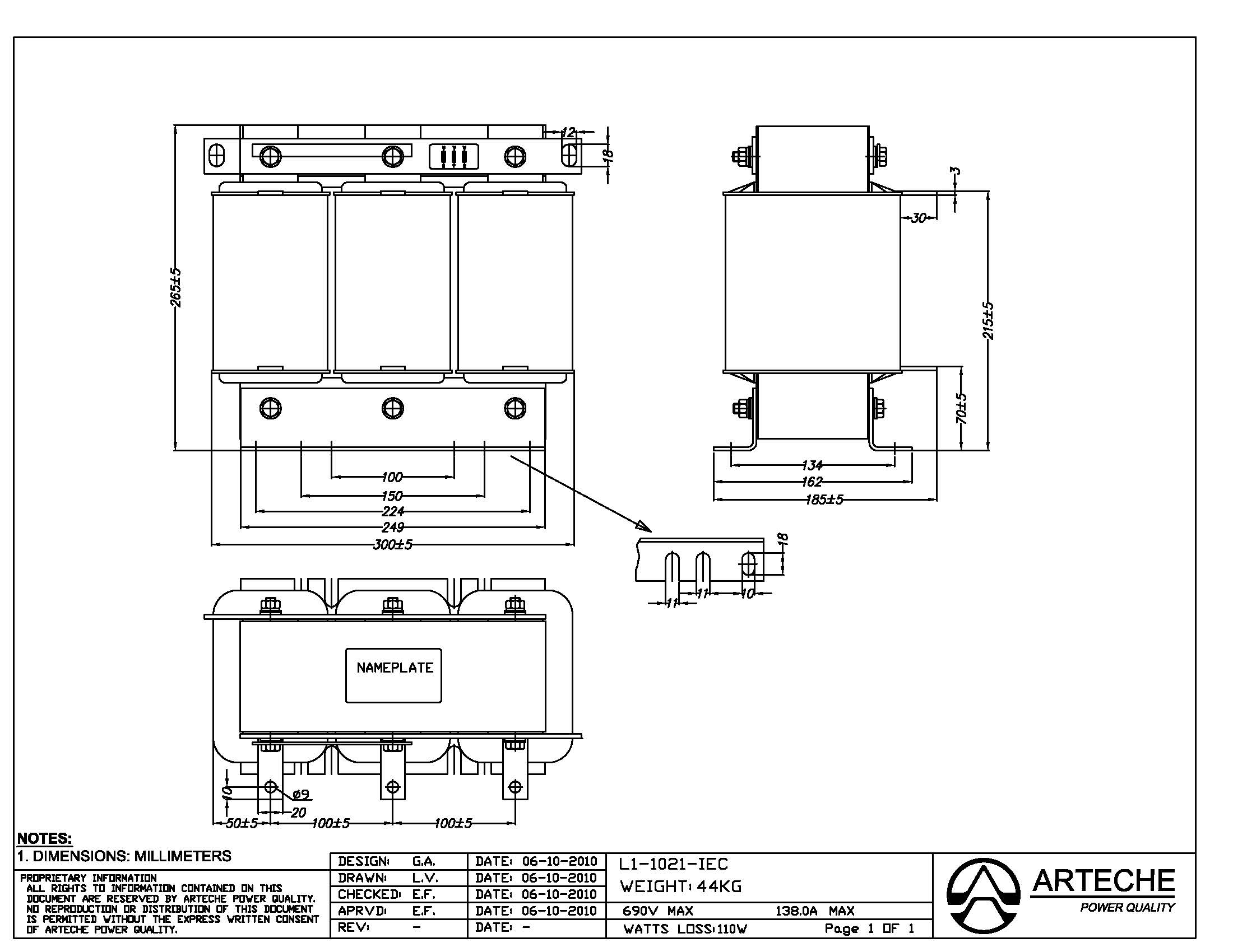 Arteche 電抗器 (3Ph, 138A, 690V) II L1-1021-IEC