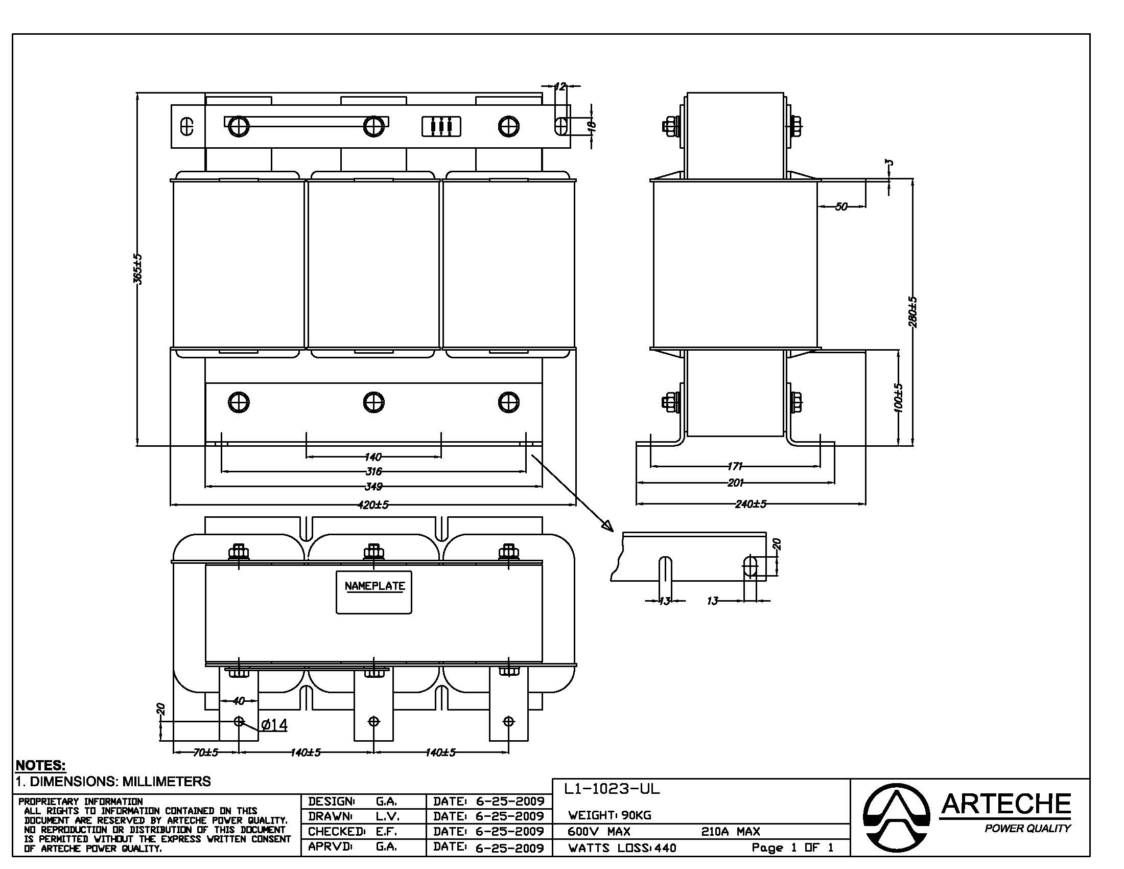 Arteche 電抗器 (3Ph, 210A, 600V) II L1-1023-UL