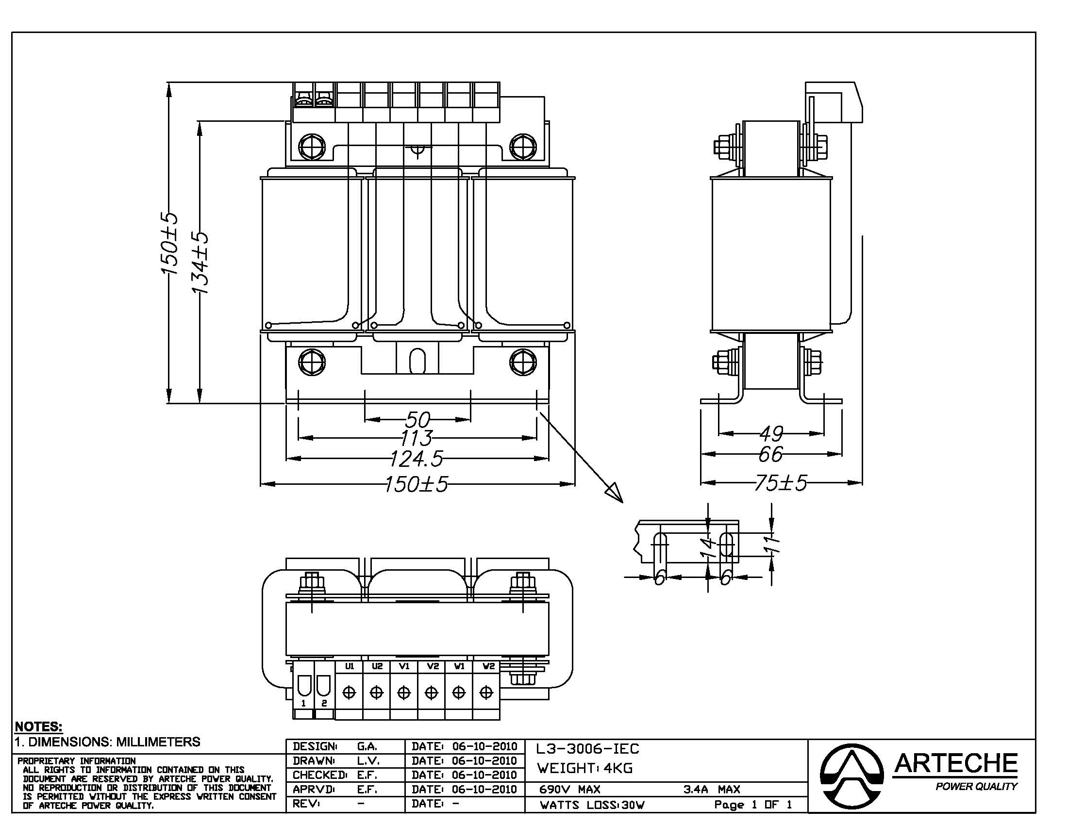 Arteche 電抗器 (3Ph, 3.4A, 690V) II L3-3006-IEC