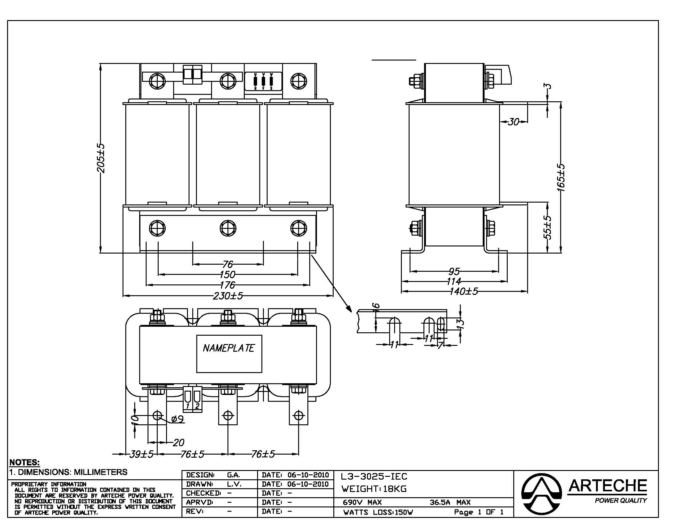 Arteche 電抗器 (3Ph, 36.5A, 690V) II L3-3025-IEC