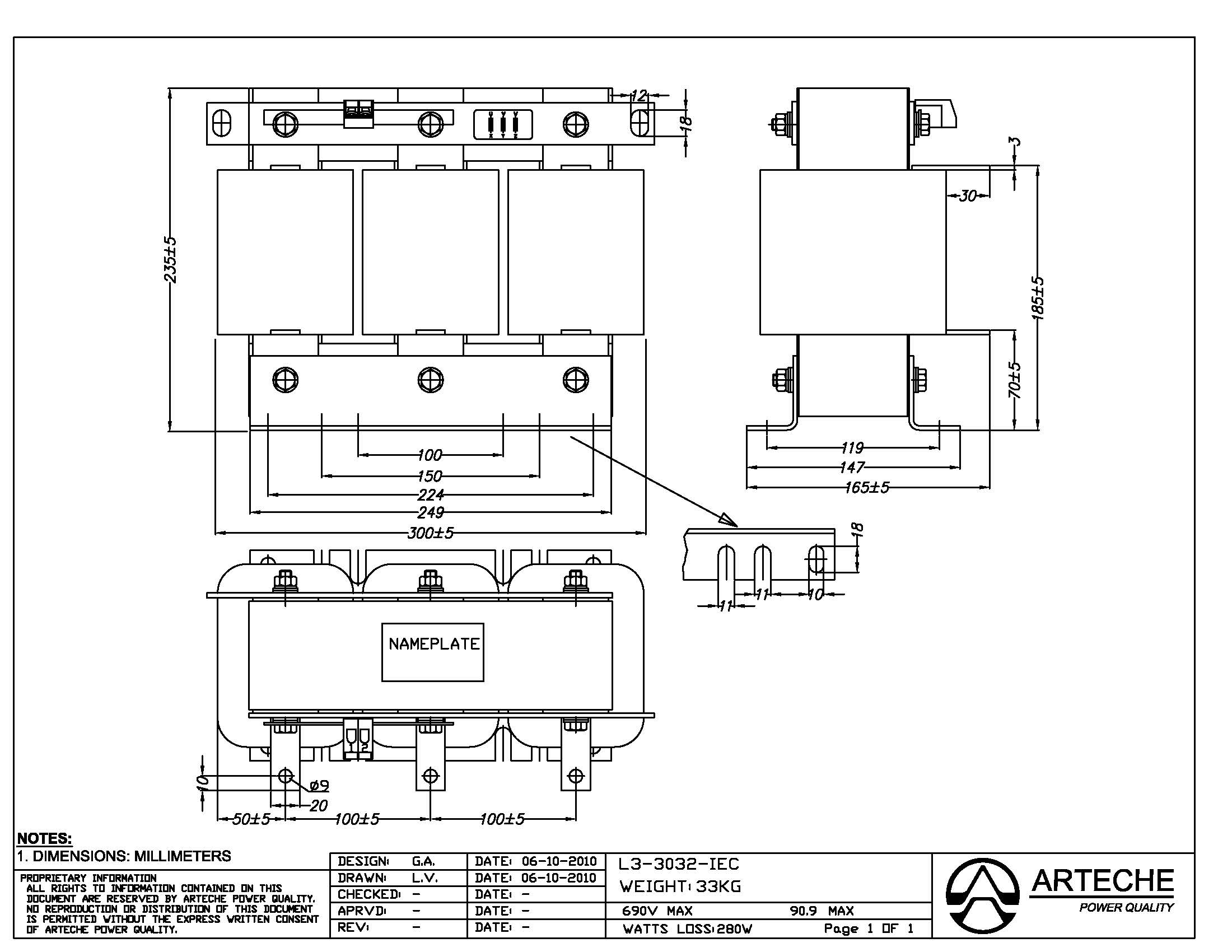 Arteche 電抗器 (3Ph, 90.9A, 690V) II L3-3032-IEC