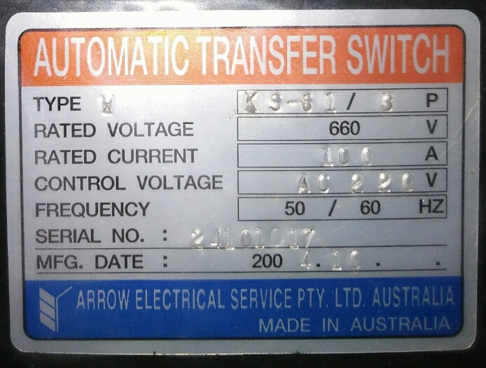 ARROW ATS 自動切換開關 3P 100A AC220V KS-61
