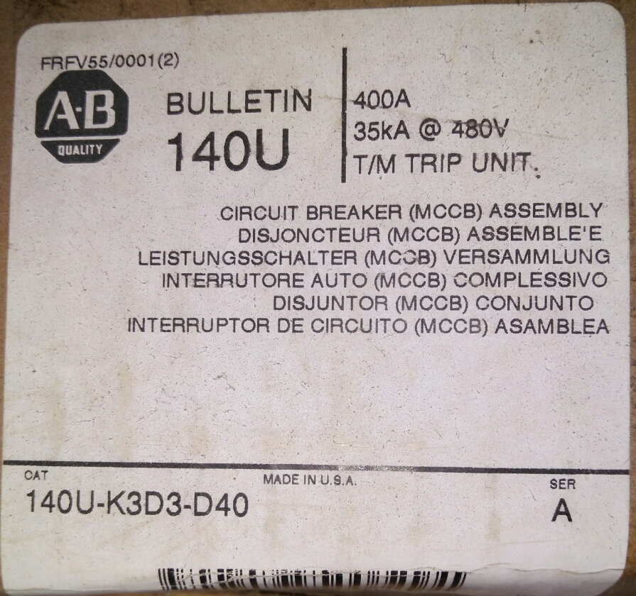 AB 斷路器 (Circuit Breaker,3P 400A 35KA 480V) 140U-K3D3-D40