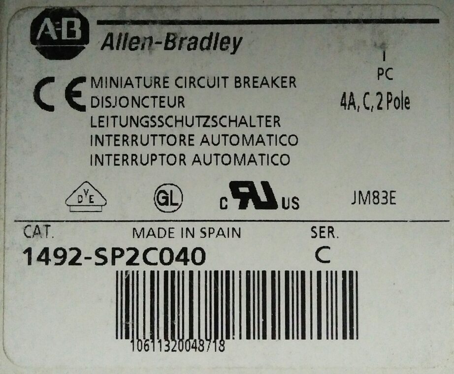 AB 微型斷路器 (Miniature Circuit Breaker,2P 4A 10KA 277VAC) 1492-SP2C040