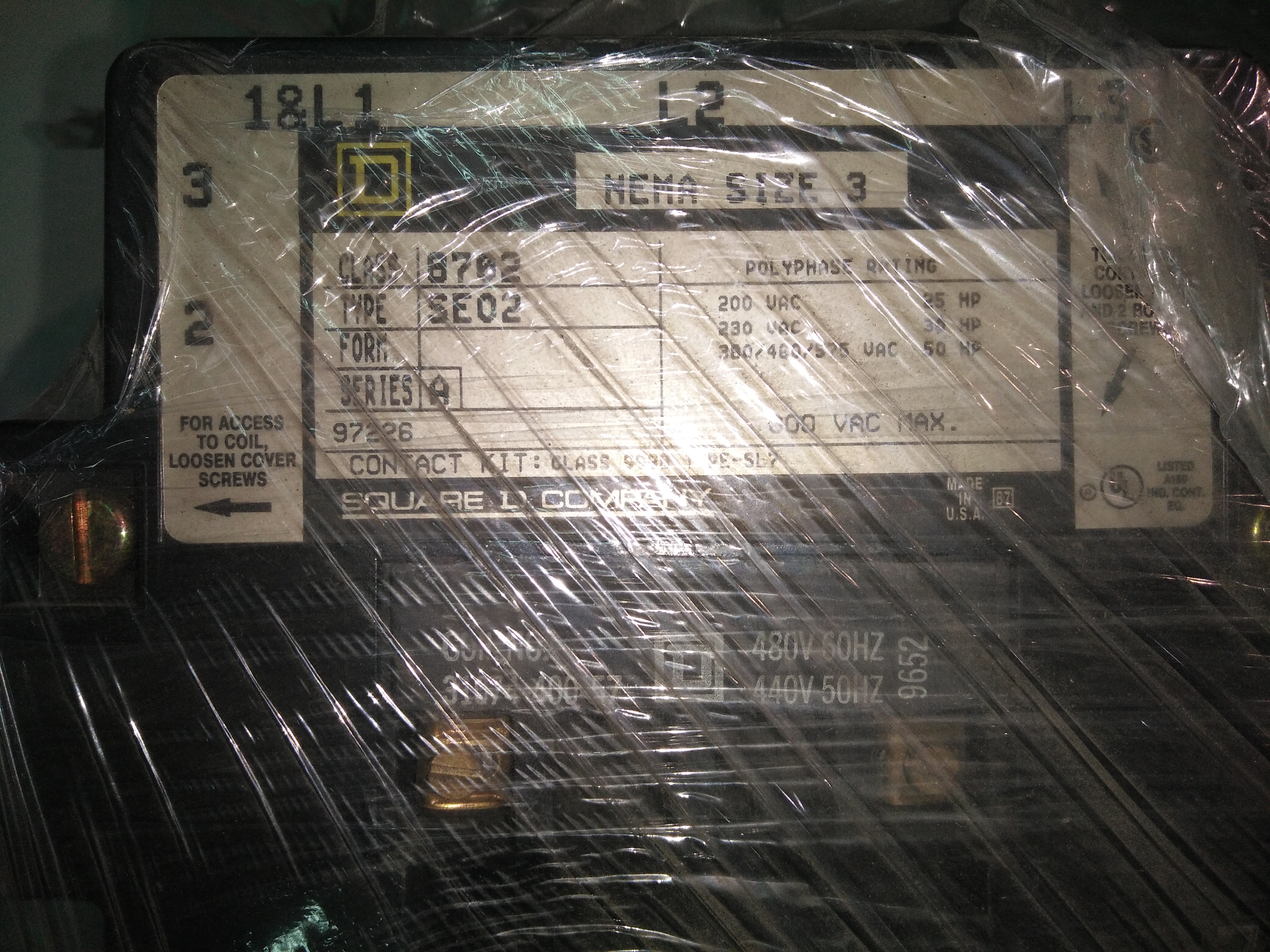 SQ-D 正逆轉接觸器 (Reversing Contactor, 3HP, COIL:AC480V 60HZ) 8702SE02